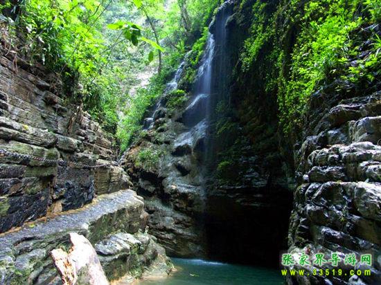 坐龍峽,經(jīng)由300萬年大自然的風(fēng)吹、水蝕而成,一直隱逸于湘西茫茫十萬群山之中。它長約3500米,最大高差達(dá)300余米;寬處不足丈余,窄處僅容一人通過;谷內(nèi)絕壁縱疊,溪瀑橫懸,崖樹斜逸,異草遍被。