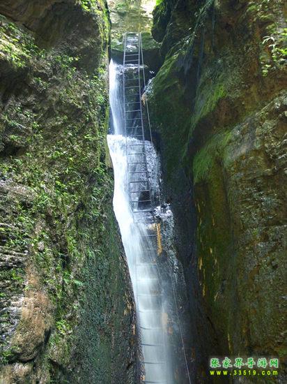 坐龍峽擁有中國第一條特種游道。所有游道均建于峽谷深處,依山取勢,既經(jīng)細(xì)心雕琢聽卻又渾然天成。粗樸的板栗木棧道,可以讓你零距離的親近那一潭碧幽、聽聞山泉叮咚;精巧的跳墩,可以讓你媳戲流泉、觸感溪瀑;原質(zhì)的石坎道,讓你不得不調(diào)動全部的身心能量悉心攀援、感悟峽谷;有驚無險的鐵梯,讓你伴著腳下轟鳴的溪水,在驚怵中體味一份快慰。 出口出的土家山寨,保留了古樸獨特的生活習(xí)俗。一塊臘肉就一口醇香的“苞谷燒”會讓你洗去所有的疲憊,在輕松中憨厚的主人向你講述過去強(qiáng)人出沒的故事