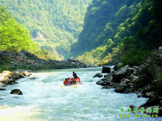 猛洞河因“山猛似虎,水急如龍,洞穴奇多”而得名。“張家界看山,猛洞河玩水”已是湖南湘西旅游精髓。猛洞河水量豐富,河流坡降大,水急灘多浪奇,高大的峭壁直插水面,兩岸并相靠攏,形成幽深的峽谷景觀。沿河兩岸古木蒼天,蒼翠欲滴,奇石錯(cuò)落,流泉飛瀑隨處可見(jiàn),下游一路水碧山青,風(fēng)光秀麗,野猴成群,溶洞奇特。猛洞河天下第一漂項(xiàng)目位于猛洞河支流,全長(zhǎng)47公里,最精彩處位于哈妮宮至牛路河段,長(zhǎng)約17公里。該景區(qū)兩岸多為原始次森林,蔥蔥郁郁,水流湍急,碧綠清亮,有十里絕壁,十里瀑泉,十里畫(huà)卷,十里洞天的美譽(yù)。其中有急流險(xiǎn)灘108處,大小瀑布20處。漂流,穿急流,越險(xiǎn)灘,闖狹谷,捕激浪,有驚無(wú)險(xiǎn),回味無(wú)窮。特別是哈妮宮、三角巖、雞籠門(mén)、遇仙峽(捏土)、閻王灘、落水坑、夢(mèng)思峽、鯉魚(yú)剖肚、三大炮等景點(diǎn),無(wú)不令人叫絕觀止。