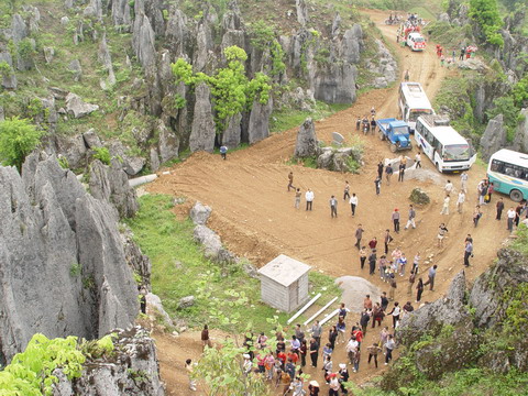 登上洛塔,只見連山綿谷,萬石如林,一塊塊青灰色的大石頭競(jìng)高競(jìng)秀,競(jìng)美競(jìng)奇,綿亙縱橫,層疊交錯(cuò),造型奇特,塔狀、蓮臺(tái)狀、羅漢狀、錐狀、刀狀、箭簇狀、帷幕狀等林立薈萃,像一個(gè)個(gè)神奇的迷宮,組成洛塔地質(zhì)公園的旖旎景觀。有的玲瓏斫剔,若女繡工鐫;有的嶙峋怪異,如鬼斧神鑿;有的崢嶸巉峻,似水墨丹青;有的嵯峨兀立,藤蔓纏繞,更像一株株挺拔的古樹。高的、矮的、大的,細(xì)的。粗、瘦、皺、滑,各具特色,如人之面目相具而無一相似者,在綠樹紅花間亮麗起一道道迷人的風(fēng)景。洛塔石林遍及整個(gè)山界,較集中的有楠竹車水坪石林、梭洛趙家灣石林、八仙洞石林及公路沿線的銀河塔石林,僅車水坪一帶的石林面積就達(dá)1000多畝。無論其規(guī)模面積,造型及組合情況,洛塔石林都可與云南石林媲美。