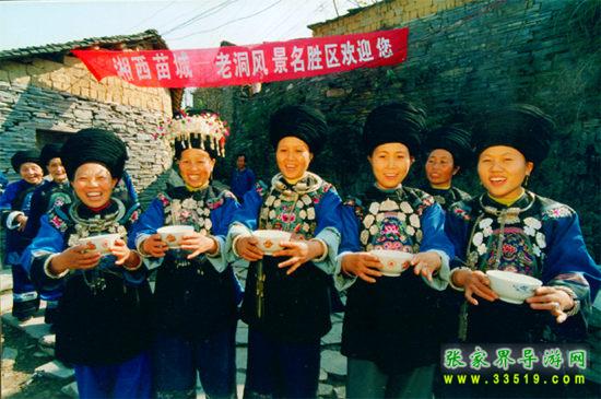 三、訪苗寨:穿越神工鬼斧的天然石洞,進(jìn)入老洞苗寨。鑼鼓喧天,笙歌陣陣,熱情的村民唱起了祝酒歌。品迎客酒,吃農(nóng)家飯,參觀列入歷史文化名村的古老獨(dú)特的石頭風(fēng)格建筑,觀看苗寨為您安排的互動(dòng)節(jié)目。下午四點(diǎn)乘老洞專車返回鳳凰古城,開(kāi)始新的愉快旅程。