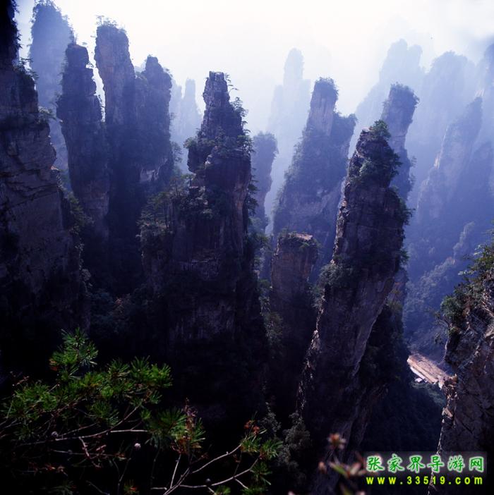 天子山位于武陵源的西北部,總面積5400公頃,與張家界國家森林公 園、索溪峪呈三足鼎立之勢。它東自深圳閣起,西至將軍巖止,綿延近40公里。