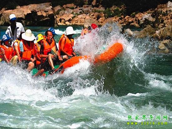 茅巖河漂流段是大庸城西20公里青魚潭往北一段。茅巖河雖灘險(xiǎn)流急,但河床坡度小,水位落差不大;險(xiǎn)灘較短(一般僅20余米長(zhǎng)),而險(xiǎn)灘與險(xiǎn)灘間的距離卻較長(zhǎng)(一般均逾千米),故浪濤適中,漂流有驚無(wú)險(xiǎn)。茅巖河主要景點(diǎn)有:血門溝、洞子坊、茅巖灘、夾兒溝、溫塘溫泉、麻陽(yáng)古渡、茅巖河峽、水洞子瀑布等。沿河兩岸青山綠水、風(fēng)光如畫,故又稱“百里畫廊”。