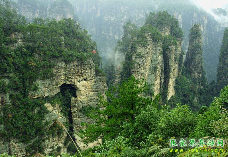 這個深不見底的峽谷中,數(shù)不清的石峰石柱密集廣布,爭頭露角,形成浩瀚的峰林。像人、像獸、像針、像線、像刀、像槍、像瓶、像塔、像世間成物,或連綿起伏,或嶙峋挺拔,千姿百態(tài),好像天下所有奇峰怪石都來這個峽谷,正在開一個盛大的Party(慶祝會)。面對這個“放大的盆景,縮小的仙景”,一種歡樂、舒暢的感覺油然而生。您是想喊,想叫,想拍照,還是想縱身一跳?想喊、想叫或是想拍照都沒問題,只是千萬別想跳,一“跳”便成千古恨,下面可是從來沒有人去過。傳說這是王母娘娘的御花園——王母娘娘未必真有,但說這兒是花園卻名副其實。張家界陽光充足,雨量充沛,“四季花兒開,一年春常在”,特別是陽春三月,山花爛漫,五顏六色,美不勝收。