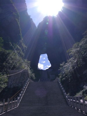 天門洞,而今天,在原地只能舉目見(jiàn)山不見(jiàn)洞了,欲觀望這一勝景,要到 四公里 之外的大 庸橋