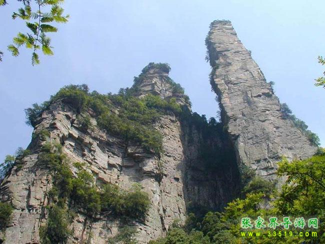 與金鞭巖隔溪對峙,矗立在斜坡上,高200余米。上下粗細一般,峰體渾圓,色赤,呈70度角向金鞭溪傾斜,形似醉酒羅漢,欲倒不倒,似醉非醉,詼諧幽默。清嘉慶學(xué)士彭之臣在峰壁書寫一“忠”字。清道光四年(1824),貢生彭之運作《壁忠記》譯文以彰其勝。風(fēng)雨蒼桑,“忠”字因山石崩塌遭毀,《記》存于當(dāng)?shù)刂緯小?/p>