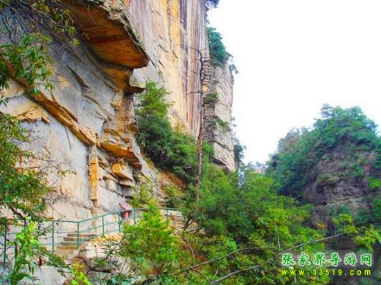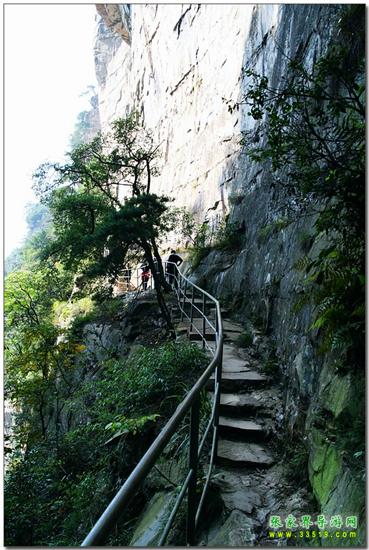 由群仙開宴景點(diǎn)沿石徑蜿蜒而下約200米處,一巨峰于半腰分裂,內(nèi)可行人,長(zhǎng)300米,寬0.1-1米。南側(cè)懸崖峭壁,深不見底。北側(cè)石壁高50米,抬頭不見其頂。人行其內(nèi),如置身空中長(zhǎng)廊。廊中虬松懸崖,亂云飛渡,山風(fēng)呼嘯。廊之東、南和西南三面峰立如林,或如城墻,或加堡壘,各呈奇舉。