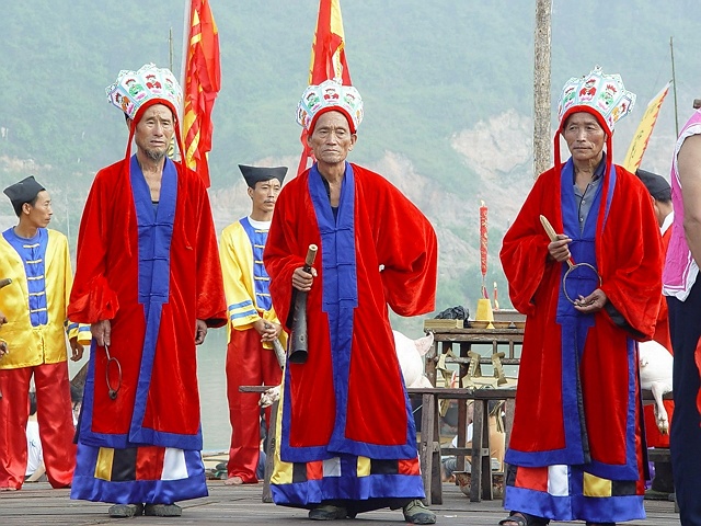 梯瑪俗稱土老司,意為敬神的人,土家族一年一度的“調(diào)年擺手”敬神祭祀活動,都由梯瑪一手執(zhí)掌,祭祀過程中梯瑪演唱的敬神之歌就叫“梯瑪神歌”。為真實(shí)演繹出湘西土家的神秘歷史,湘西幾位幸存的梯瑪大師、鬼谷神功的四十三代傳人、在歐美多次舉辦過演唱會的苗歌皇后龍仙娥,四上人民大會堂匯報演出的侗歌合唱團(tuán)以及土家蜘蛛人等一批民間藝人參與演出。200多名演職人員中,年齡最大的96歲,最小的3歲,由湘西地區(qū)原生態(tài)演員和群眾演員組成。
