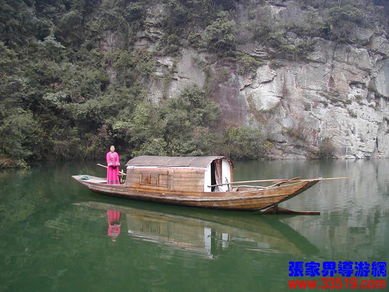(索溪)從水繞四門以下,至黃龍洞一段溪水,就是著名的索溪。據(jù)縣志記載,因官軍討伐向王天子起義而得名索,古稱索水。索溪匯集武陵源八百條溪澗之水,然后注入婁水,并入澧水。當(dāng)代一位叫蘇葉的女作家,為索溪之美所激動,竟然表示“來生甘作石,嫁與索溪水”,下輩子要作索溪的妻子。