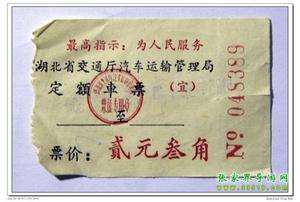 8月14日下午3時(shí),乘坐一輛很破舊的長(zhǎng)途車(chē),約3小時(shí)顛簸到達(dá)宜都枝城鎮(zhèn),即那時(shí)通車(chē)不久的枝柳鐵路起點(diǎn),每人2.3元。車(chē)票上還印著“最高指示”。